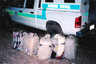 Border Patrol and bales of drugs